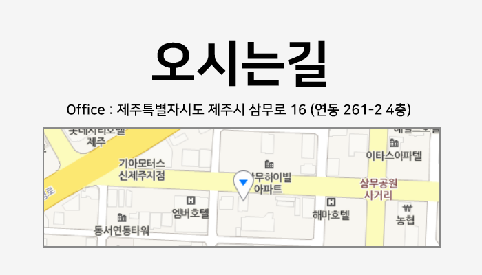 주소 : (63129) 제주특별자치도 제주시 삼무로 16 (연동) 4층